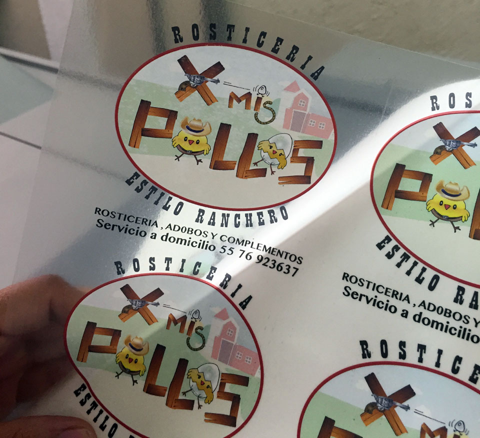 (Impresas a todo con corte a registro a figura, papeles recomendados: Adhesivo blanco, Vinil blanco, Polipropileno transparente, Adhesivo Metalizado)
