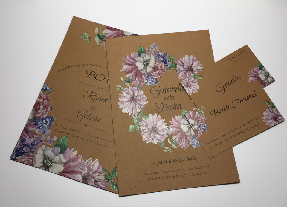 (Impresas sobre Cartulinas Texturizadas a todo color frente o frente y vuelta mas corte a laser con la figura de tu preferencia, papeles recomendados: Opalina Cartulina Tela, Reciclado Cartulina, Kimberly, Tintoreto, Cambridge, Majestic, Sirio Pearl, Rives, Kraftsena)
