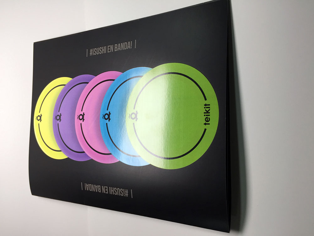 (Impresas sobre Cartulina Negra o Kraftsena a todo clor frente o frente y vuelta mas tinta blanca)